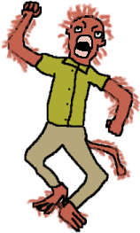 Arga apan Arga apan är en apa av obestämd art, vilken alltid är arg. Han tenderar att skälla på allt och alla, men det är ofta fallet att han råkar illa ut på grund av det. En möjlig förklaring till hans konstant dåliga humör kan vara att han arbetar på arbetsförmedlingen. Arga apan dök först upp i stripp 10. | ![]() |