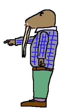 Ian Seriens andreperson och Orvars bästa kompis. Då valrossar har fötter som är helt verdelösa på land och nästan omöjliga att använda i en furry comic, så fick jag hitta på att han har mänskliga fötter. Ian är inte heller ett fläskberg som valrossar är i naturen. Däremot är han glad för att laga mat, och riktigt bra på det dessutom. Ian har fått en god uppfostran och klär sig alltid ordentligt, man misstänker en klassisk borgerlig skolning, och det är inte helt fel gissat. Ian dök först upp i strip 11. | ![]() |