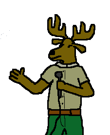 "Reportern" Älgen är seriens främsta mediepersonlighet. Han förekommer både som programledare i TV och som reporter. Något mer om honom är inte känt i nuläget. Reportern dök först upp i stripp 31. | ![]() |